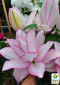 Лилия Розовидная "Roselily Anouska" – это первоклассный представитель восточных гибридов. Многочисленные белые лепестки бутона окантованы бледно-розовым тоном и не имеют пыльников, что считается преимуществом для флористов, поскольку букет не испачкает одежду пыльцой. Цветы достаточно высокие с крупными бутонами, которые отлично держат срез. Культура хорошо чувствовать себя на солнечной стороне и в полутени, подходит для цветника и контейнера. Аромат подчеркивает эстетическую силу и усиливается с заходом солнца.