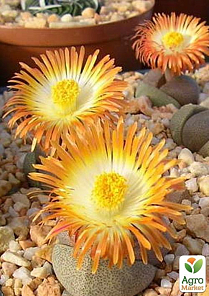 Литопс (Lithops) - род суккулентных растений, относится к семейству Аизовых (Aizoaceae) или мезембриантемовых. Родина литопсов – бесплодные каменистые пустыни Южной и Юго-Западной Африки. Растут они на жарких и сухих участках почвы, на южных каменистых склонах, там, где другие растения выжить не могут. Растение не имеет стебля, только два сросшихся плотных листа с щелью между ними, из которых произрастает цветок и корень. Отличаются литопсы по форме и окраске цветков. Окраска довольно разнообразна, в зависимости от сортов.