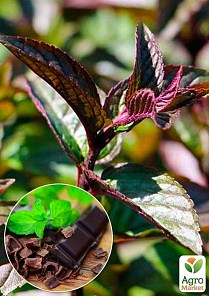 Мята Шоколадная "Mentha Chocolate" – это сорт мяты перечной, был выведен в Нидерландах. В отличие от всех других разновидностей растение обладает более мягкими вкусовыми качествами и ароматом свежести и шоколада. Высота кустов достигает 60см, побеги его размещены вертикально, на поверхности изредка встречаются волоски. Листовые пластинки округлой формы, по цвету они зелено-фиолетовые, расположение противоположное друг к другу. Цветет мята мелкими и собранными в метелки соцветиями светло-фиолетового оттенка.