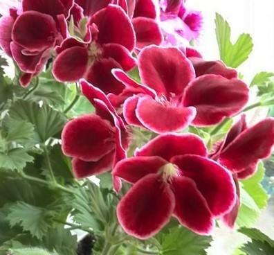 Яркая декоративность куста и пышное цветение при правильном уходе сохранятся с марта по октябрь. Для этого цветок необходимо своевременно обрезать, подкармливать и соблюдать температурный режим.Пеларгония королевская, за исключением нескольких сортов, отличается от других гераней слабо выраженным ароматом. Высота растения не превышает 50 сантиметров. Крупные соцветия отличаются большим разнообразием окрасок. Встречаются белые, розовые, бордовые, фиолетовые и почти черные сорта. На лепестках некоторых присутствует рисунок в виде пятен, черточек и прожилок. Лепестки могут быть махровые с волнистым краем или ровные, раскрывающиеся в плоскость. Цветки королевской герани собраны в зонтичное соцветие, достигающее 15 сантиметров в диаметре и покрывающее все растение. Цветы на королевской пеларгонии появляются в марте-апреле, заканчивается цветение в сентябре.