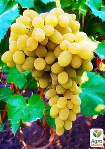 Гроздь средней величины (длиной 13-16см, шириной 11-13см), цилиндрическая и цилиндро-коническая, плотная и очень плотная. Ножка грозди средней длины - 4-5см, травянистая. Масса грозди 87-94г. Ягода средней величины (диаметром 14-15мм), почти круглая, часто деформированная, светло-зеленая с золотистым оттенком, покрыта темными точками и пятнами. Кожица прочная, мякоть сочная, с ярко выраженным мускатным вкусом.