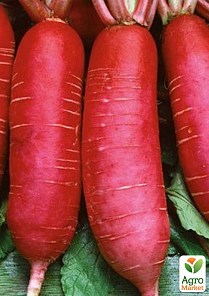 Редька дайкон "Император" - это корнеплод ярко-красного цвета с белой хрустящей сочной мякотью.