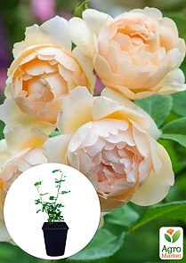 Роза в контейнере английская "Wollerton Old Hall" - это одна из самых ароматных роз от компании Д. Остина. Ее сильный аромат имеет теплые интенсивные цветочные нотки с примесью мирровых и включениями абрикоса. Плотный округлый бутон вне покрыт красными лепестками. Из него раскрывается круглый, чашеобразный цветок в мягких абрикосовых оттенках, которые со временем становятся сливочными. Махровый цветок состоит из минимум 40 атласных полупрозрачных больших лепестков. Средний диаметр цветка 9 см. В основном, цветки одиночные, иногда собраны в кисти 2-5 шт. Цветение повторяющееся.