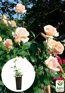 Роза в контейнере чайно-гибридная Paul Ricard - это идеальная форма цветка и удивительный аромат ванили с карамелью! Цветки красивые, густомахровые (40-45 лепестков), с крупными лепестками, чудесной сливочной или нежно-абрикосовой окраски и более темной изнанкой - цвета меди или янтаря. Цветение обильное, непрерывное. Цветки долго стоят в срезке. Куст ветвистый, густой, высотой 150-160 см. Лист зеленый, плотный, матовый. Сорт устойчивый к заболеваниям, морозостойкий