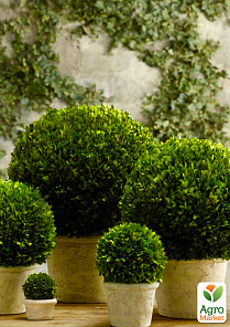 Самшит "Шарм" – это вечнозелёный высокий густой кустарник, иногда небольшое дерево с коротким кривым стволом. Листья супротивные, почти без черешков, голые, блестящие, темно-зеленого цвета с верхней стороны пластины и матового светло-зеленого. Форма листьев вытянуто-округлая длиной от 1.5 до 3см. Мелкие однополые зеленоватые цветки собраны в компактные головчатые соцветия. Плоды - шаровидные коробочки небольшого размера со створками, раскрывающимися, когда созревают семена.
