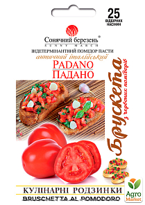 Томат "Падано" - это высококачественный итальянский сорт для брускетты со средними (около 100 г) овальными, красными плодами с плотной мякотью и нежным ароматом. Имеет идеальный размер и отлично подходит для всех мыслимых итальянских блюд из помидоров - супов, соусов и соков. Имеет настоящий томатный вкус с кремообразной консистенцией и замечателен в свежем виде, консервированным или сушеным.