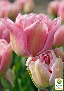 Тюльпан "Mariage" - это изысканный сорт махрового тюльпана, который полностью оправдывает своё название, переводящееся с французского как брак или свадьба. Он выглядит по-настоящему торжественно и нежно, словно создан для украшения романтических моментов жизни. Бутоны крупные, густомахровые, с лепестками кремово-розового оттенка, украшенными жёлтыми мазками и штрихами, что придаёт цветку лёгкую художественность и изящество.