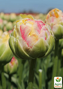 Тюльпан "Sprinkle Dip" - это оригинальный сорт, который покоряет своей необычной окраской и причудливым внешним видом. Основание лепестков имеет ярко-жёлтую, которая переходит в розовую с легким штрихом, словно брызги акварели. Изначально цветок зелёно-розовый, но постепенно переходит в жёлто-розовый.