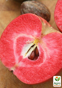 Яблоня красномясая "Тринити" - это новый, позднелетний красномясый сорт, высоко зарекомендовавшим себя на плодовом рынке. Новинка с красной мякотью. Сорт зимостойкий, устойчив к болезням, быстро вступает в плодоношение. Тринити спеет в конце лета. Кожица окрашена в насыщенный темный бордовый цвет, блестящая, на ощупь тонкая и гладкая. Вкус спелого яблочка сладкий и очень сочный, мякоть окрашена в красный тон, сок этого сорта яблок по своим свойствам близок к соку граната.. Масса около 200 грамм.