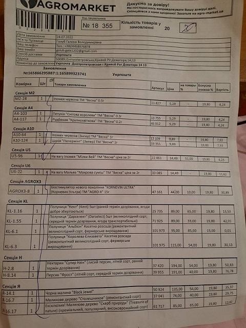 Дуже дякую агромаркету за посилку. Замовляла виноград та полуницю. Все ідеально упаковано, саджанці у гарному стані. Буду чекати на врожай.