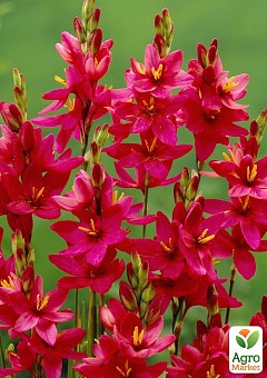 Дешева вартість посадкового матеріалу робить цю квітку доступним для вирощування в будь-яких масштабах і на будь-якій території. У нашій країні культивується понад 40 видів Іксіі. Висота стебла коливається в районі 30-40 см, суцвіття за формою схожі на великий колос з декількома витонченими квітками, що закриваються в нічний період часу. Цвіте ця рослина з липня до серпня. Особливу декоративну цінність представляють гібридні сорти, продаж яких ми також проводимо.