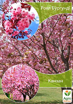- Сакура червонолиста "Роял Бургунді" – невисоке дерево, що цінується за великі рожеві квіти, зібрані в пензлі. Сорт дуже декоративний, використовується в ландшафтному дизайні, як солітер чи груповий посадці. Рослина воліє сонячне місце і добре дреновані ґрунти. При вирощуванні приділяють увагу обрізці для формування красивої крони, збереження декоративності та здоров'я дерева.