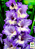 Гладіолус "Blue Frost" - це світлолюбна, багаторічна рослина незрівнянної краси. Відноситься до класу Батерфляй крупноцветковий. Призначений для зрізання, в букеті довгий час зберігає свіжість. Висота стебла до 120 сантиметрів разом з суцвіттям. Стебло одиночний, прямостоячий, укріплений довгими, вузькими листям. Рослина потрібно підв'язувати. Бутони зелені, на одному стеблі до 20 штук. Розквітають по 7-8 одночасно. Забарвлення пелюсток переходить від ніжного світло-бузкового всередині до бузкового по краях кольором. Шість пелюсток утворюють воронкоподібну форму квітки.