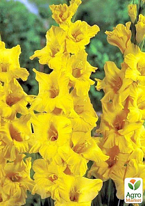 Гладіолус "Morning Gold"-це неймовірна за красою, розкішна і дуже популярна серед флористів і садівників квітка. Він вражає своєю чисто жовтим кольором. Квіти мають шість різних за формою бархатистих, гофрованих по краях пелюсток. Квіти великі, по 15 сантиметрів шириною. На одному квітконосі за сезон відцвітає до 25 бутонів. Цвітуть зверху вниз по 5-8 штук одночасно. Зацвітає в липні-серпні і радує своїм цвітінням майже місяць. Стебла рівні, високі (до півтора метрів). Вирощується для зрізання.