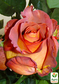 Ексклюзив! Роза чайно-гібридна жовто-коралова "Танго" (Tango) - це зрізочна, чайно-гібридна троянда. Дуже великі, помірно-махрові квітки (17-25 пелюсток), чашоподібної форми. Сорт може бути використаний в ландшафтному дизайні. Найчастіше вирощується як зрізочна. Букет з її квітів справляє приголомшливе враження завдяки дивовижної колірній гамі пелюсток. Вони щільні, оксамитові, жовто-коралові. Квітка бокаловидной форми, досить великий, 8-10см в діаметрі, з'являється по одному на довгих квітконосах. Аромат ніжний, але дуже легкий. Листя щільні, середньо-зелені.