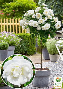 Ексклюзив! Троянда штамбова ніжно-біла "Білосніжка" (Snow White) (саджанець класу АА +, преміальний махровий сорт) 1 саджанець в упаковці