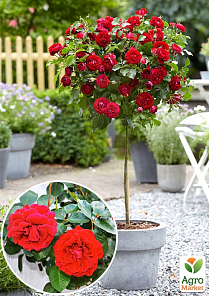 Ексклюзив! Троянда штамбова яскраво-червона "Гра почуттів" (Play of feelings) (саджанець класу АА +, преміальний пишноцветущій сорт) 1 саджанець в упаковці
