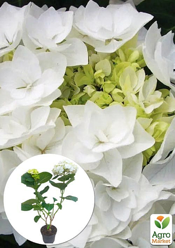Гортензія квітуча крупнолиста "Доппіо Б'янко" (Hydrangea macrophylla Doppio Bianco) вазон С1,5 1 саджанець в упаковці