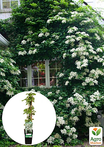 Гортензія кучерява ліана "Petiolaris" - це швидкозростаюча, морозостійка, кучерява ліана, яка утворює масу повітряних коренів, що дозволяє їй підніматися вгору до 20 м. Це найвища черешковая гортензія з великими щитковидні суцвіття білого кольору. При відсутності опори може повзти по землі, а діставшись до невеликої огорожі, може сформувати невисокий кущ. Рослина відрізняється високою морозостійкістю. Потужна листопадна ліана з разрастающимися в сторони пагонами, на яких є коротенькі повітряні коріння.