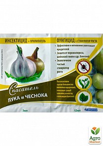 | Стеблевая нематода, цибулевий мінуюча муха, цибульний скритнохоботнік, журчавка, цибулевий моль, кореневої кліщ, тютюновий цибульний тріп і ін. | 1 пакет 3 мл + 1 пакет 12мл на 10л води |
