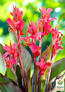 Канна темнолиста «Red Stripe» - це надзвичайно декоративний сорт, який цінується не тільки за яскраве цвітіння, але і за унікальне забарвлення листя. Квітки середнього розміру зібрані у витончені суцвіття на верхівках міцних стебел. Пелюстки мають чистий, глибокий коралово-червоний відтінок, який виглядає дуже ефектно на тлі масивного листя. Сорт надає саду справжній тропічний колорит і архітектурну виразність завдяки своїм великим формам.