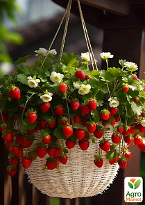 Полуниця ампельна «Гірлянда» - це один з найефектніших і найврожайніших ремонтантних сортів, створених спеціально для декоративного та практичного садівництва. Назва сорту говорить сама за себе — під час цвітіння та плодоношення кущі справді нагадують живу гірлянду з квітів та ягід, що спадають каскадом.