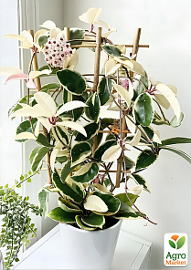 Квітки - класичні для хойї carnosa: зірчасті, воскові, світло-рожеві з темно-рожевою серединкою, зібрані в щільні парасольки до 20 квіток. Аромат виражений, солодкий, посилюється ввечері. Цвітіння найчастіше починається після другого року життя і буває з весни до осені, при хорошому догляді і стабільних умовах - кілька разів на рік. Висота пагонів до 1,5-2,5 метрів, добре гілкується при прищипуванні, відмінно підходить як для вертикального озеленення, так і у вигляді каскаду з підвісного кашпо.