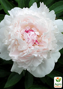 Півонія трав'яниста "Festiva Maxima"-це рослина,яка відноситься до трав'янистого класу з щільними, напівмахровими квітами, неймовірно красивими суцвіттями діаметром до 20см, невинно-білий в центрі на кінчиках пелюсток мітки червоного, аромат ніжний приємний. Складний квітка з правильно розташованих увігнутих пелюсток, як з лусочок. Квітконоси півонії дуже стійкі і не вимагають опори заввишки 90-100см, завдяки чому кущ зберігає свою форму і не руйнується під вагою великих квіток. Ажурна пишна розсічена листя зберігається до пізньої осені, стаючи з темно-зеленою багряної.