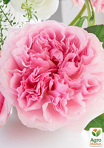 Півоноподібна кущова троянда має приємний, хоч і слабенький аромат. Сорт відносять до невисоких та компактних – до речі, саме такі зараз у моді. Забарвлення квітка має ніжно-рожевий, з характерним ніжно-зеленим відливом краю пелюсток зовні. Основне забарвлення – рожеве, квітка бліда і велика. У діаметрі досягає 12 см. Належить до густомахрових. Пелюсток у нього дуже багато, 120, і це головне, що робить його схожим на пишний півонія. Квітки можуть розташовуватися поодиноко або в кистях, на стеблі – від 1 до 3 квіток.