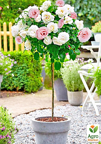 Троянда штамбова "Свані" - це справжній витвір мистецтва, популярний сорт із дрібними білими густомахровими квітками. Така троянда не тільки чудово поєднується з іншими сортами, а й ефектно виглядає як акцент садового дизайну. Цей популярний сорт виведений відомою французькою фірмою Meilland, що спеціалізується на стійких селекціях. Є приємний літній аромат.