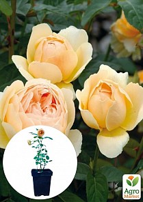 Троянда в контейнері англійська Jude the Obscure - це сорт висотою до 120 сантиметрів. Бутони великі, з ніжно-абікосовими та вершковими в центрі та кремово-білими зі зворотного боку пелюстками.