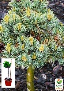 Сосна на штамбі "Беран" - це повільно зростаючий декоративний карликовий кущ. Красива сферична форма. Річний приріст 4-6 см. Шишки утворює в ранньому віці. Один з найкрасивіших сортів з нерегулярною кроною. Хвоя блакитно-зелена, густа, м'яка.