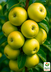 Донешта - це старовинний український сорт, перевірений часом і садівниками. Цей ранній сорт цінується за великі, ароматні і дуже смачні яблука, які радують урожаєм вже в середині серпня. Яблука відрізняються великим розміром (150-160 г), привабливою округлою формою з легкою асиметрією і помітними ребрами. Їх блідо-жовта шкірка гладка і блискуча, а соковита кремова м'якоть з легким жовтим відтінком тане в роті, даруючи гармонійний кисло-солодкий післясмак. Завдяки нерівномірному дозріванню урожай можна збирати в кілька етапів, насолоджуючись свіжими плодами довше.